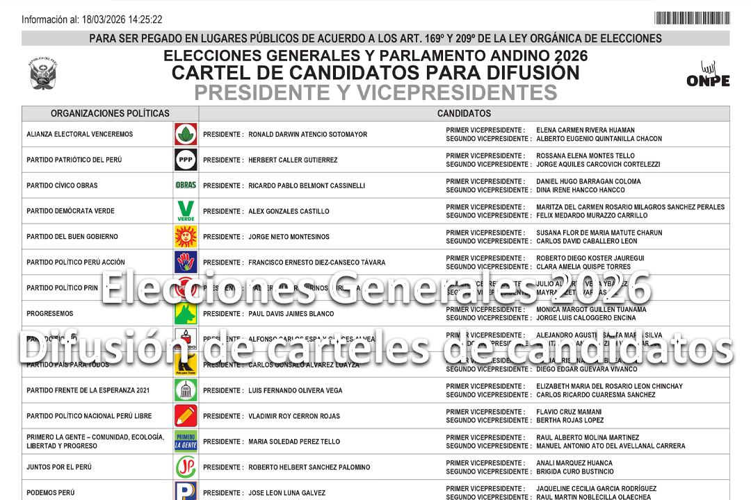 Elecciones Generales 2026: Cierre del padrón electoral el 14 de octubre de 2025